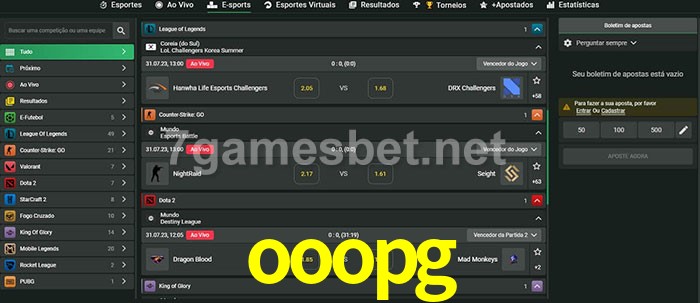 O ooopg oferece uma grande seleção de opções de apostas em e-sports com probabilidades competitivas